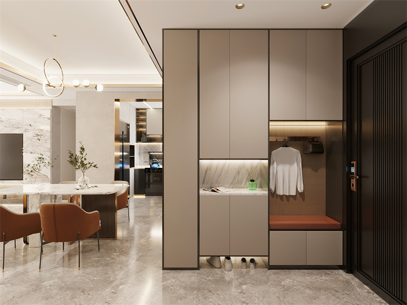 用规整布局揉入实用巧思,低饱和色调裹着利落线条,在简约形态里藏着功能的妥帖。光影与材质的轻触,让空间在有序中透着舒展,既保持了视觉的清爽,又暗合日常的便捷。
