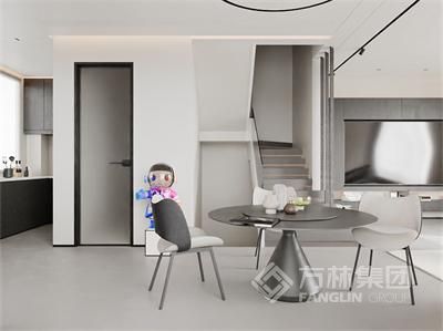 极致的黑白灰配色,突出高级但又简洁的生活品质,材质上利用墙板搭配金属线条,做到了空间上线与面的结合。全屋无主灯的设计,灯光上利用多重光源把整个空间的层次感表达了出来。